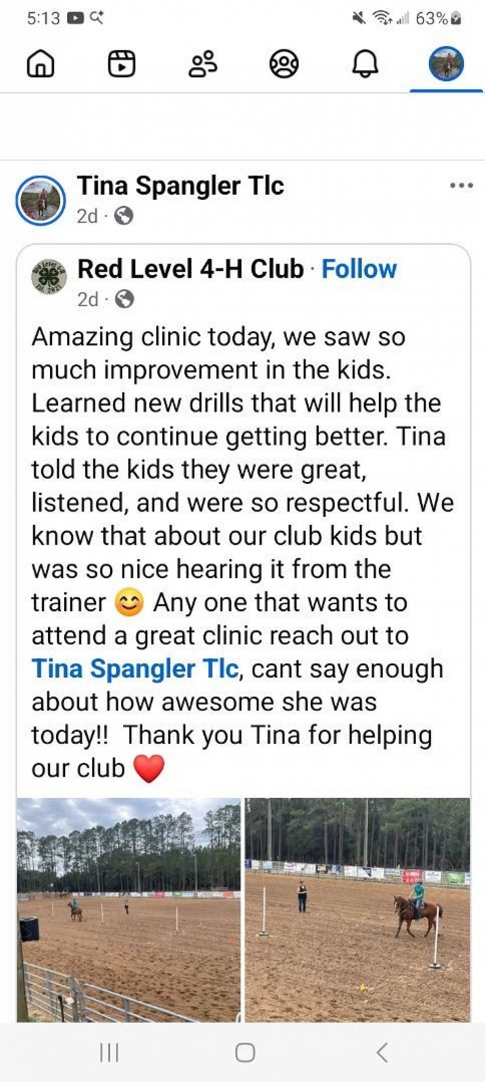 I request videos before the clinic, concerns and goals. I only take 8 riders for more 1 on 1.